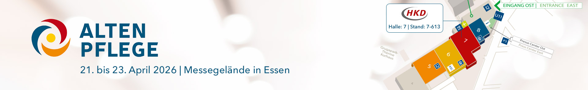 vom 21. bis 23. April 2026 wird das Essener Messegelände wieder einmal zum Zentrum der nationalen Pflegebranche und wichtigster Treffpunkt des Jahres! Erleben Sie täglich von 09.00 bis 17.00 Uhr aktuelle Entwicklungen, Produkte und Dienstleistungen rund um die stationäre und ambulante Pflege. Themen wie Nachhaltigkeit, Energie, Digitalisierung, vernetztes Wohnen und Innovationen stehen bei der diesjährigen Leitmesse im Mittelpunkt.