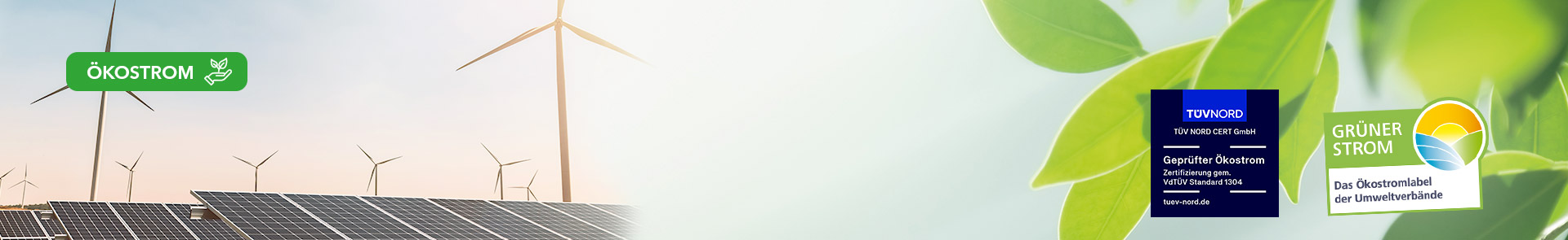 100 % Ökostrom aus Wasser- und Windkraft (aus Deutschland und Österreich)